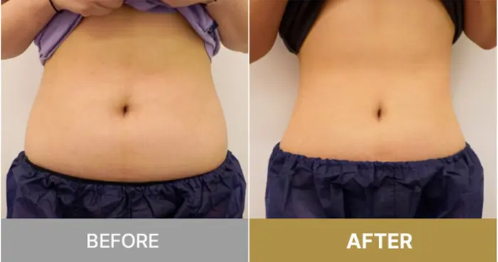 ウエストから下腹部にかけて脂肪がついて広がり、メリハリのない状態にCAT注射をした場合です。