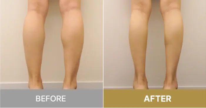 脂肪が内側に集中しているのでボコッとして太く見えてしまっていましたが、施術後は膨らみがなくなってかなり細いふくらはぎになりました。
