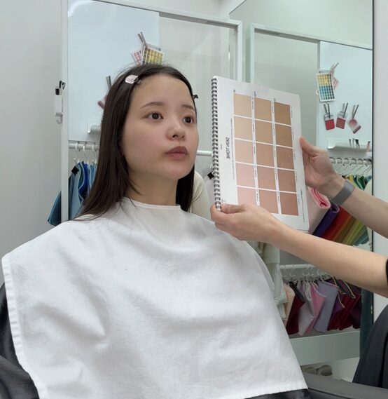 カウンセリングシートの記入が終わったらまずはパーソナルカラー診断からスタート!