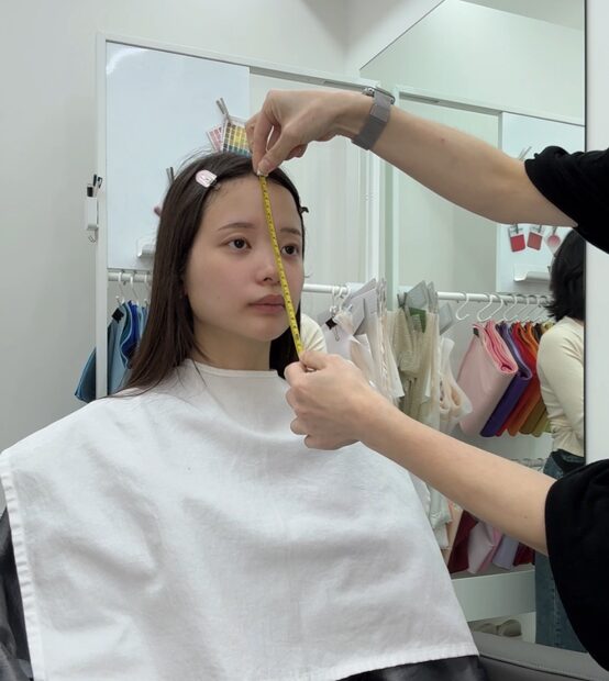 メジャーで測りながら顔型を確認します。