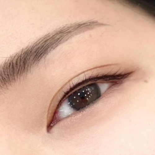 まつげの隙間を埋める程度の細いラインに、目尻部分だけをふんわりとぼかしたデザインです。すっぴんでも自然でありながら、目元に柔らかい立体感が生まれます。韓国の女優やインフルエンサーにも人気のスタイルです。