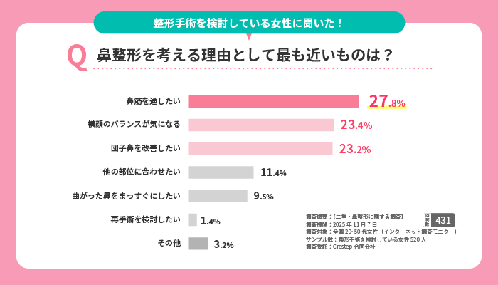 • 鼻整形を考える理由に多いのは見た目のバランス