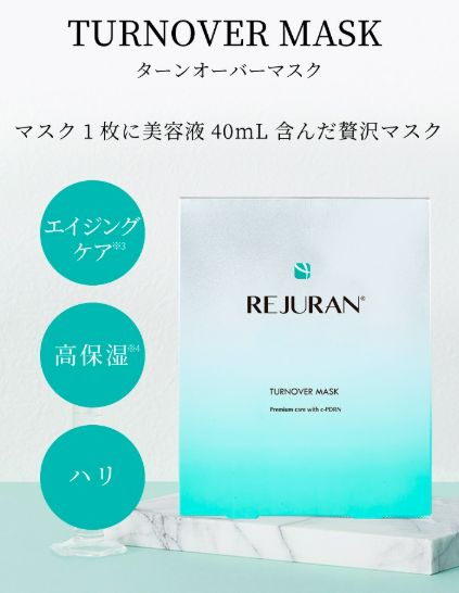 | 5位 | リジュランターンオーバーマスク | 【集中ケア】 1枚に40mL前後の高濃度美容液を含んだシートマスク。週末や特別な日の前など、集中的に肌の活力を高めたいときに最適。 | 洗顔・化粧水後の肌に15〜20分貼り付けます。冷蔵庫で冷やしてから使用すると、肌の鎮静効果(クーリング効果)が高まります。 |