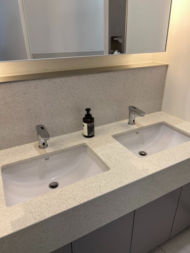 スタッフの方に案内され、おしゃれな空間のパウダールームでハンドソープ→メイク落とし→洗顔の順に顔を洗い、すっぴんの状態になります。スキンケアはそれぞれイソップで揃えらえており、また、ブラシやDysonのドライヤーなどのグッズもありました。