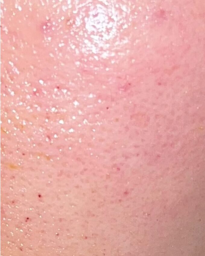 | before | 施術直後「毛穴の開き」「くすみ」がありまだらな印象。 ※濃い目の赤みは前日のポテンツァの跡です。 |