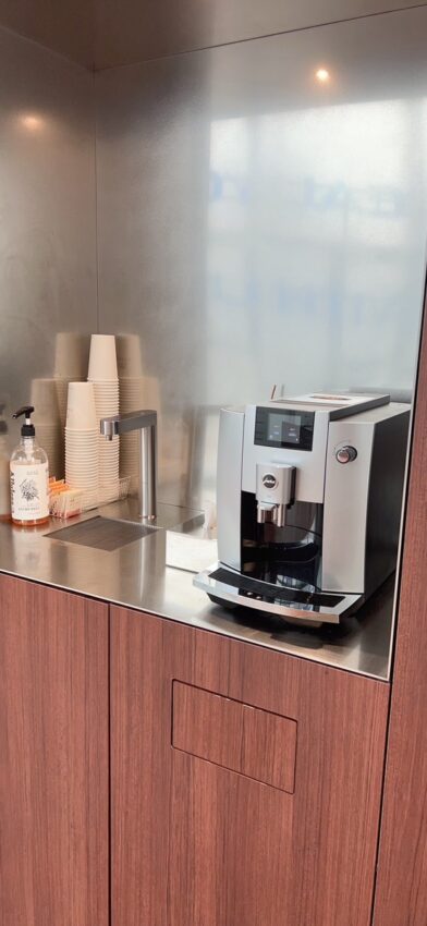 スタッフの案内があるまで、コーヒーマシンのある院内でゆっくりします。
