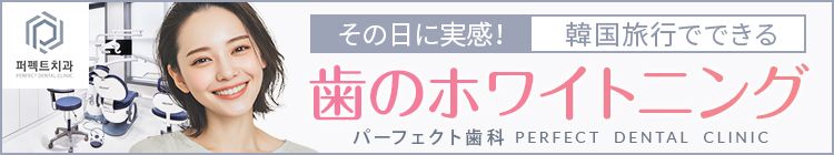 パーフェクト歯科はホワイトニングで日本でも有名な江南にある歯科クリニックです。即効性があるオフィスホワイトニングが人気で効果も高いとSNSでも話題。もちろんこちらのクリニックも通訳が付くので韓国語がわからなくても安心してホワイトニングすることができます、金額的にもリーズナブルなのも魅力の1つです。