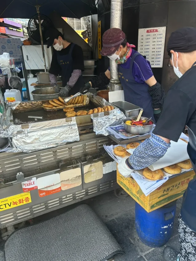寒い冬に食べるクァベギは絶品!と知り合いから聞いていたので食べれればいいなーと思っていたところ、夜ご飯のあとに市場に行くことになり、有名な「広蔵市場チャッサルクァベギ」に直行しました。行列ができていたのでさすがの人気店だなと思いつつ、一気に揚げているので並んだ時間は5分程度だったので寒い夜でも大丈夫です。クァベギはもちろんさつまいものドーナツも絶品、、✨️夜ご飯のあとでもぺろっと食べれるのは美味しいからです。当然リピあり!広蔵市場に行く人は絶対に食べたほうがいいレベルですよ。