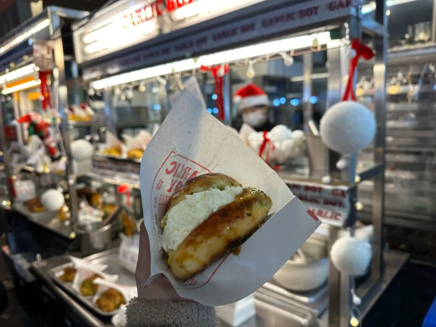 広蔵市場人気必須のマヌルパンは市場の中でもガーリックの香りでお腹が空いてくるほど。朝から行列が途絶えることはありません。食べ歩きはもちろん美味しすぎてお土産に持ち帰る人も何人もいます。熱々でも冷めても美味しいマヌルパンは日本では絶対に味わえない!マヌルパンを食べるために韓国へ行ってもいいほどおすすめです。