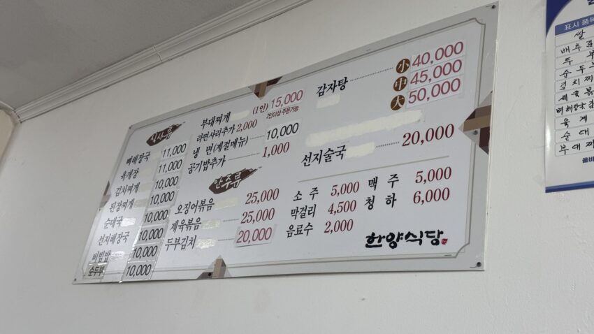 メニューは韓国語表記のみ。英語・日本語は通じないため注意。