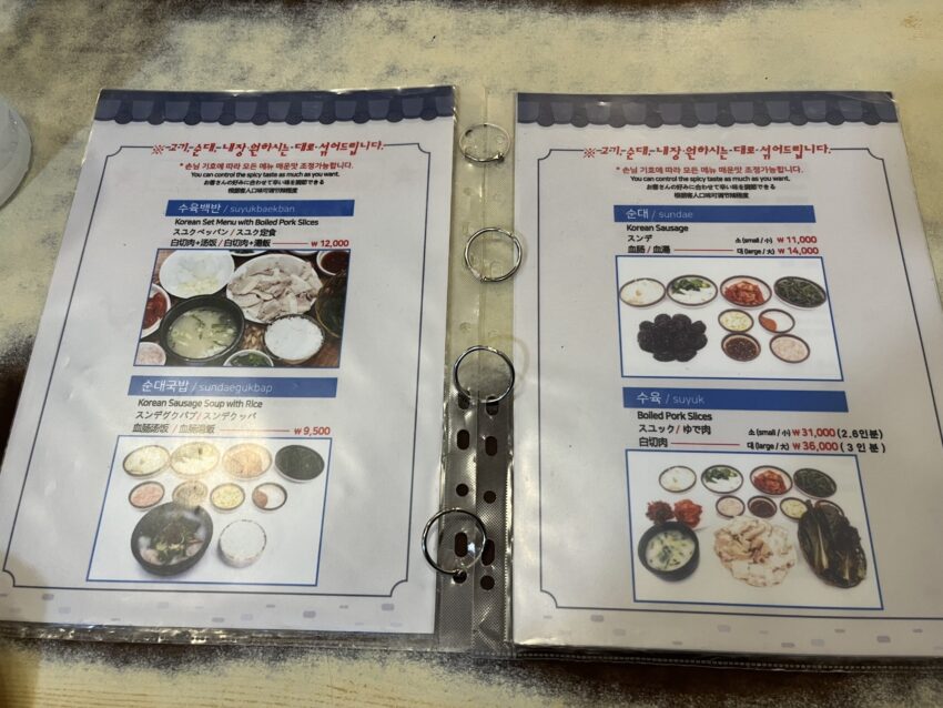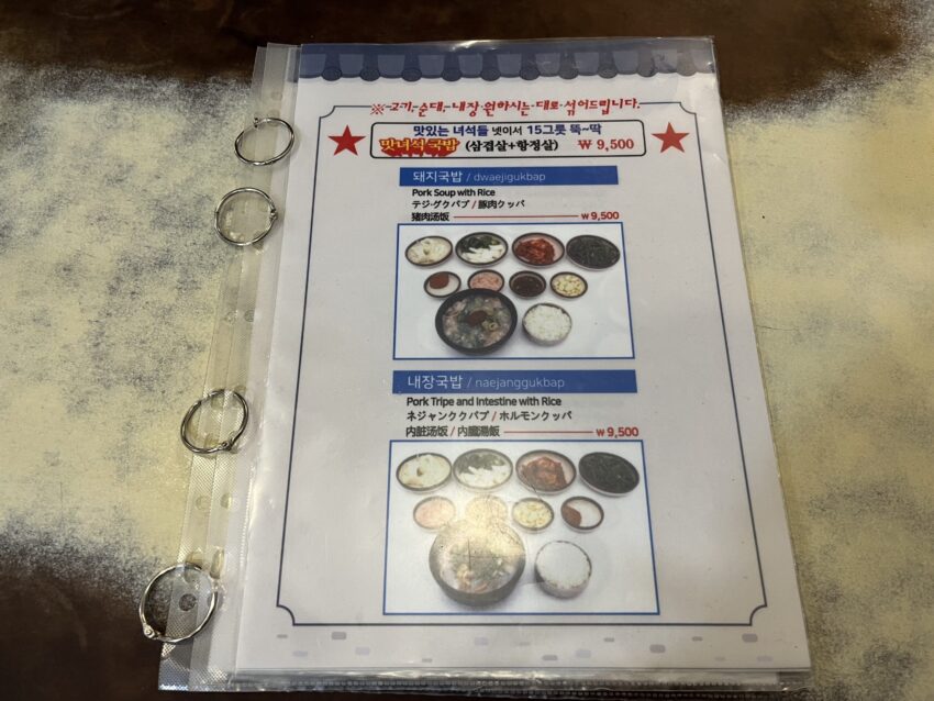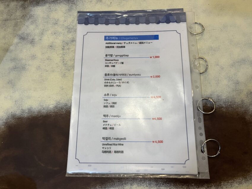 メニューには料理の写真が掲載されており、日本語も書いてあるので韓国語に不安がある方でも安心して注文できます。