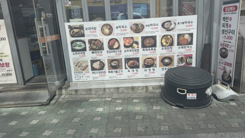 (土地柄、外国人も多いですが、店員さんは韓国語で話されます。)