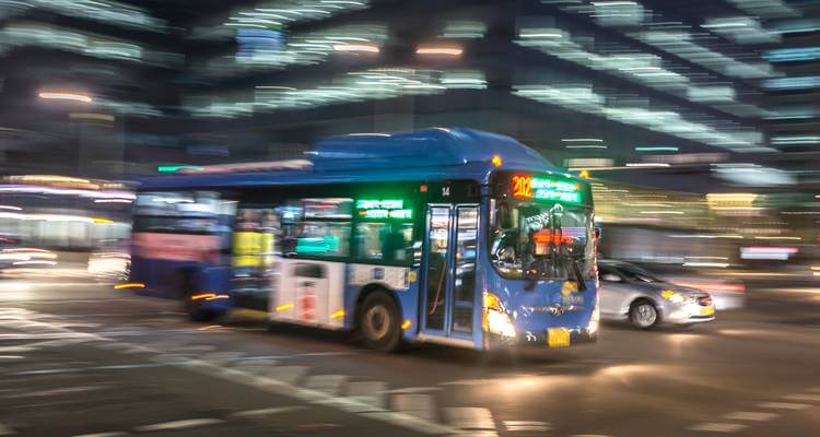 韓国市内では、あちこちに張り巡らされたバスの交通網を使った移動がとても便利です。