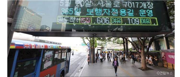 ただ、その他の時間帯でも混雑する可能性はありますよね。韓国では停留所の電光掲示板で、混雑状況をリアルタイムで確認できます。