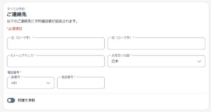 次に予約情報の入力に進みます。まずは連絡先の入力です。