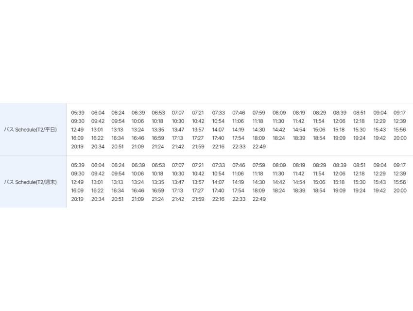 2025年10月6日現在の仁川空港第2ターミナル発、東大門エリア行き時刻表です。