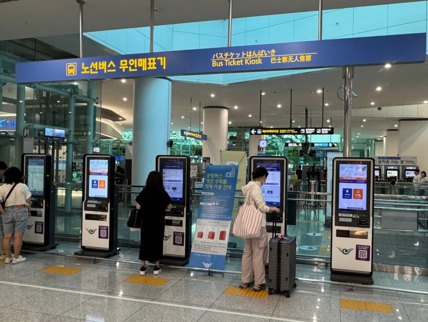 仁川空港からリムジンバスに乗る場合、乗り場や待機場近くに券売機があります。