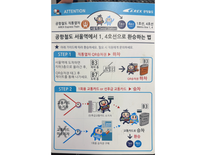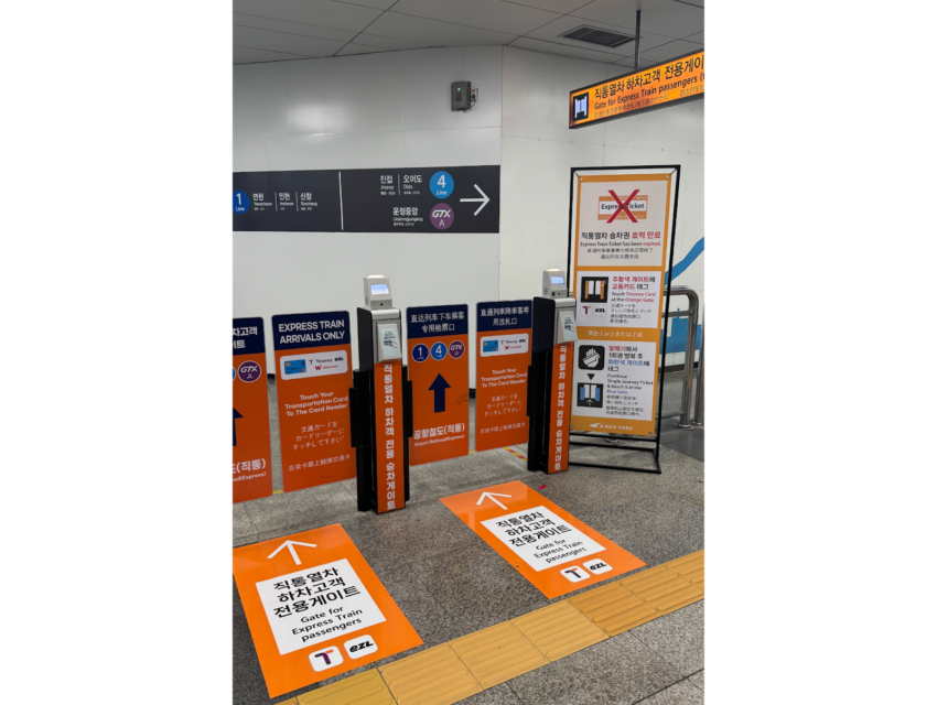 日本から到着する飛行機によって仁川空港の駅が異なりますが、経路は同じです。