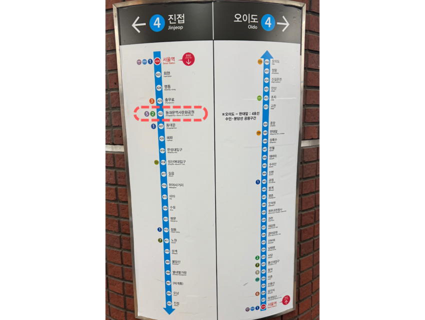 ソウル駅から東大門歴史文化公園駅までは4駅です。