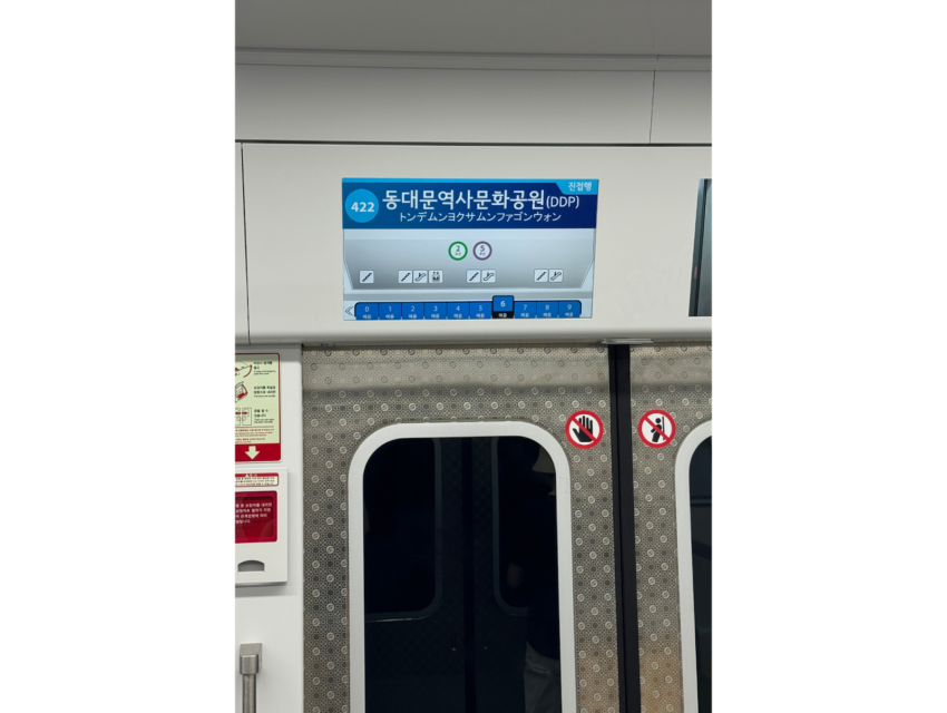 東大門歴史文化公園駅(동대문역사문화공원역)は4駅目、7分ほどで到着します。