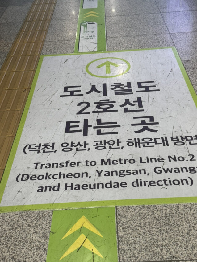 金海国際空港から西面は1回の乗り換えで行くことができるので、初釜山でも難易度は低いです。